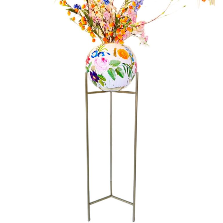 - De vaas is in 2 maten beschikbaar: een diameter van 38 cm en een diameter van 52 cm.