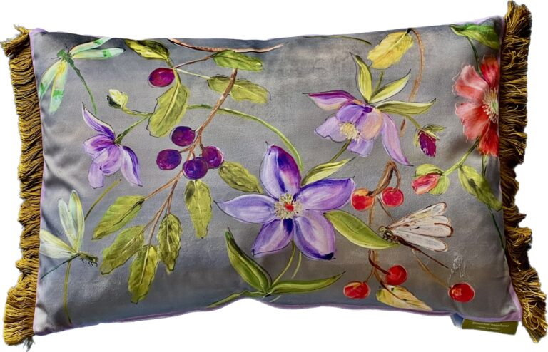 Match dit kussen bij je vaas of met andere kleurrijke kussens uit mijn collectie. Alle kussens hebben een uni-kleur achterkant, waardoor je leuk kunt afwisselen met de bedrukking. Interessant om te weten is, dat dit kussen een druk is van een geschilderde plaat. De kussens worden gemaakt in Nederland.