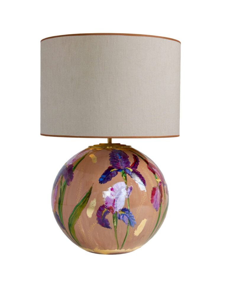 Lamp “Hazelnut” heeft dezelfde patronen als vaas “Hazelnut”, maar dan met een licht bruine lampenkap. Dé trend van dit najaar: warme, bruintinten. De vaas “Hazelnut” sluit hier perfect bij aan! De warme bruine ondergrondkleur, matchend met de rode en paarse Irissen vult ieder interieur aan. – Doortje IJpelaar