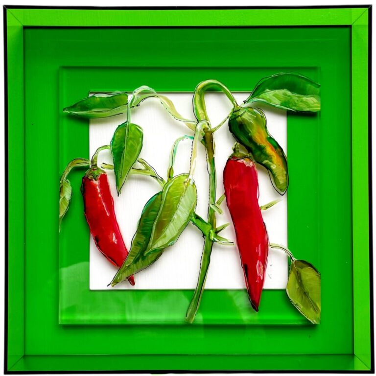 Dit plexiglasschilderij Pepers, maakt deel uit van de groentecollectie. De schilderijtjes zijn allemaal ingelijst in plexiglas baklijsten. Van ieder schilderijtje is er maar één. Leuk te combineren met andere groente, fruit of bloemen schilderijtjes!
