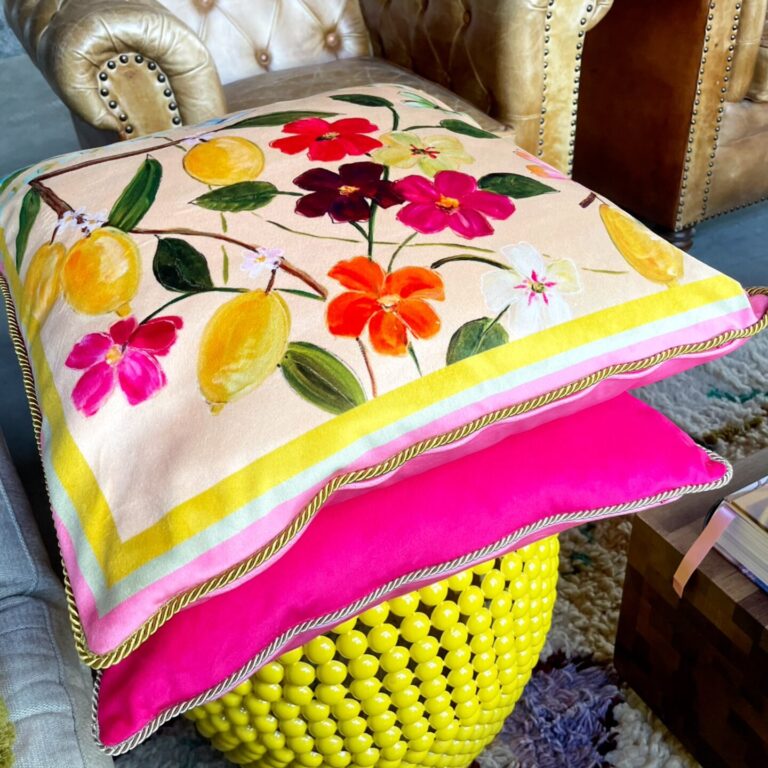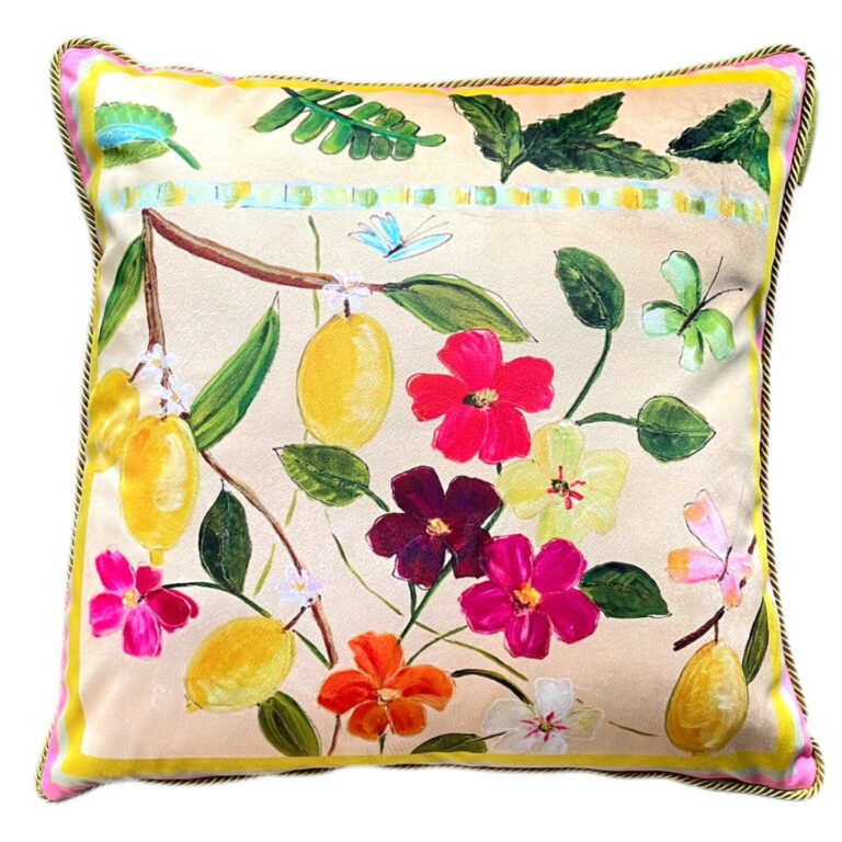 Match dit kussen bij je vaas of met andere kleurrijke kussens uit mijn collectie. Alle kussens hebben een uni-kleur achterkant, waardoor je leuk kunt afwisselen met de bedrukking. Interessant om te weten is, dat dit kussen een druk is van een geschilderde plaat. De kussens worden gemaakt in Nederland.