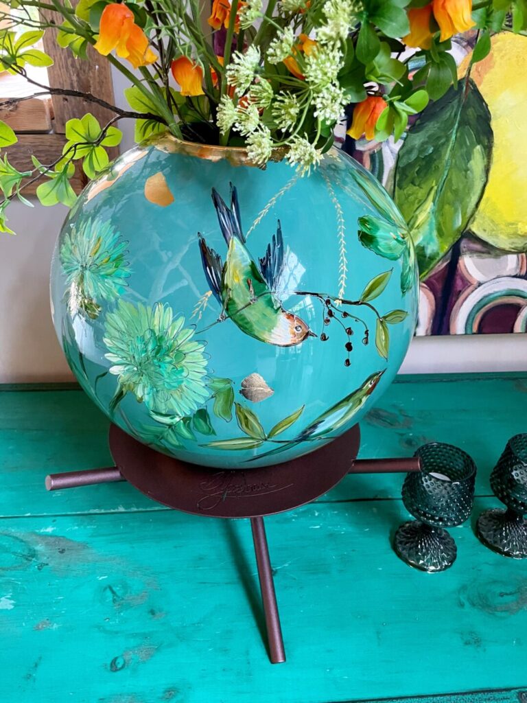 Wie houdt er nou niet van groen?! De vaas “Sea Green” zit vol natuurlijke tinten, bloemen en vogels. Rustig van kleur, maar vol leven. – Doortje IJpelaar