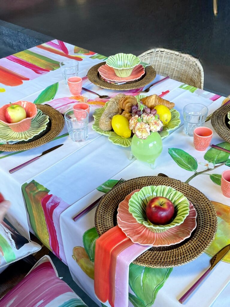 ‘ In dit tafellinnen komen mijn kleurrijke bloemen, groenten, fruit en vrolijke details samen, alsof ik een stukje van mijn kunst naar jouw tafel breng. Als ik ontwerp, laat ik me inspireren door alles wat groeit en bloeit in de natuur om me heen.